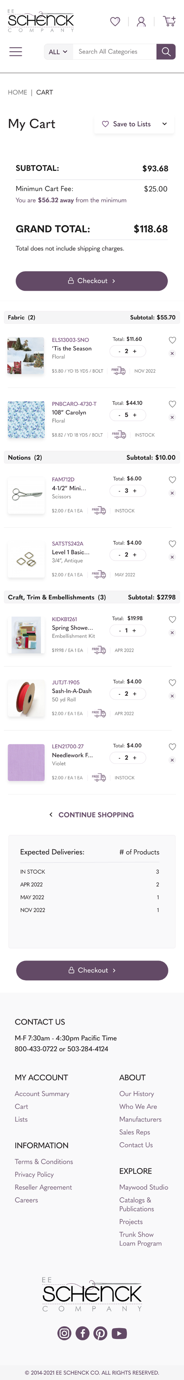 The cart drawer and cart page organize items into expand/collapse categories, helping customers manage orders and see subtotals at a glance. Because research showed customers often have very large, complex orders, the full cart page also includes a delivery summary at the bottom, giving users a clear picture of when to expect their items.