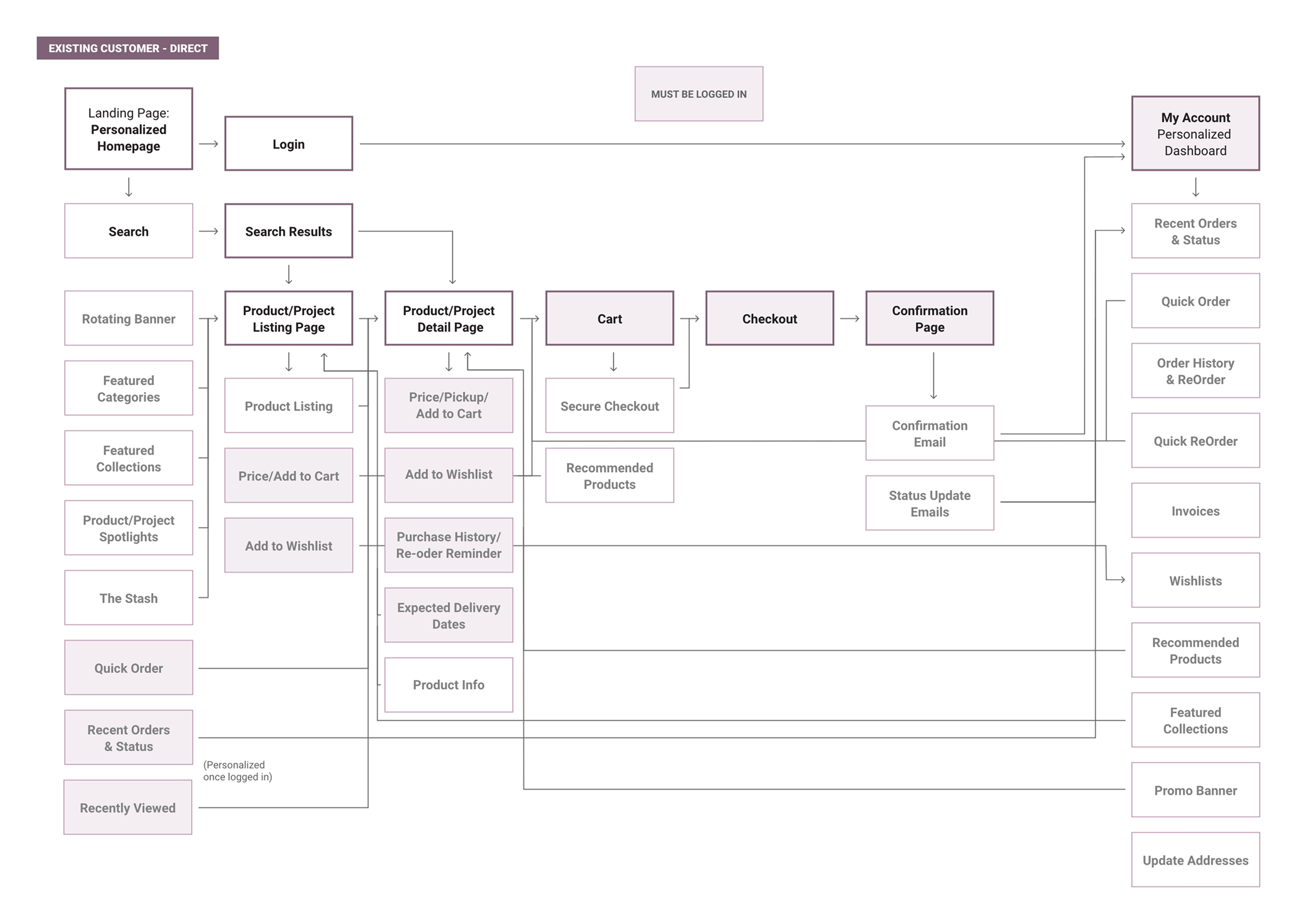 This project required clear and accurate organization of account-related information across the site. I began by understanding what each user type needed to see—and where they expected to see it—to support efficient ordering, tracking, and reordering.