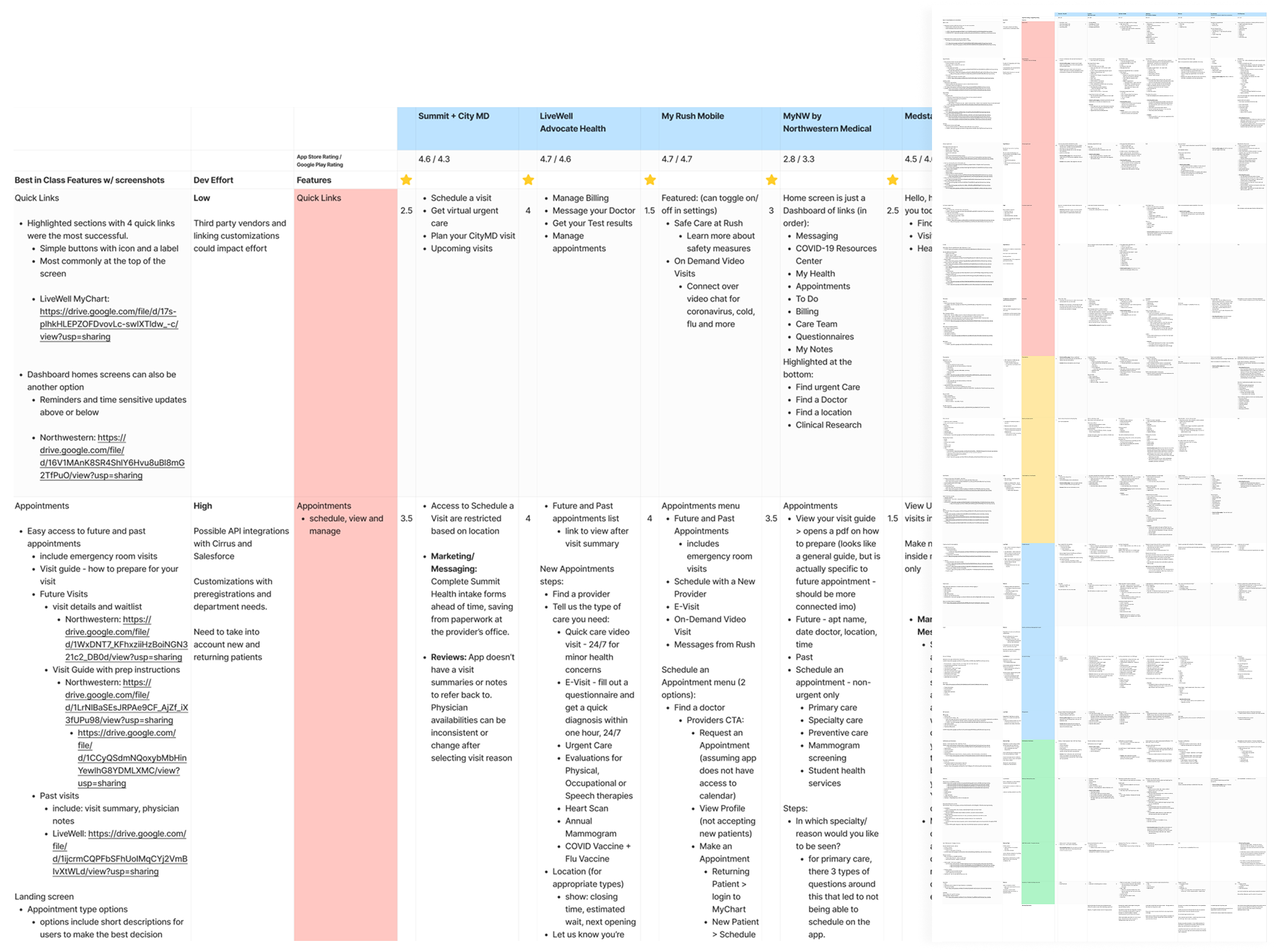 None of the apps functioned perfectly, so I identified the strongest aspects of each, to create a "Best in Class" solution. I then ranked and color-coded features by user impact while the development team categorized them by effort and technical constraints. This structured approach became an invaluable tool for prioritization, ensuring we stayed on time and within budget.