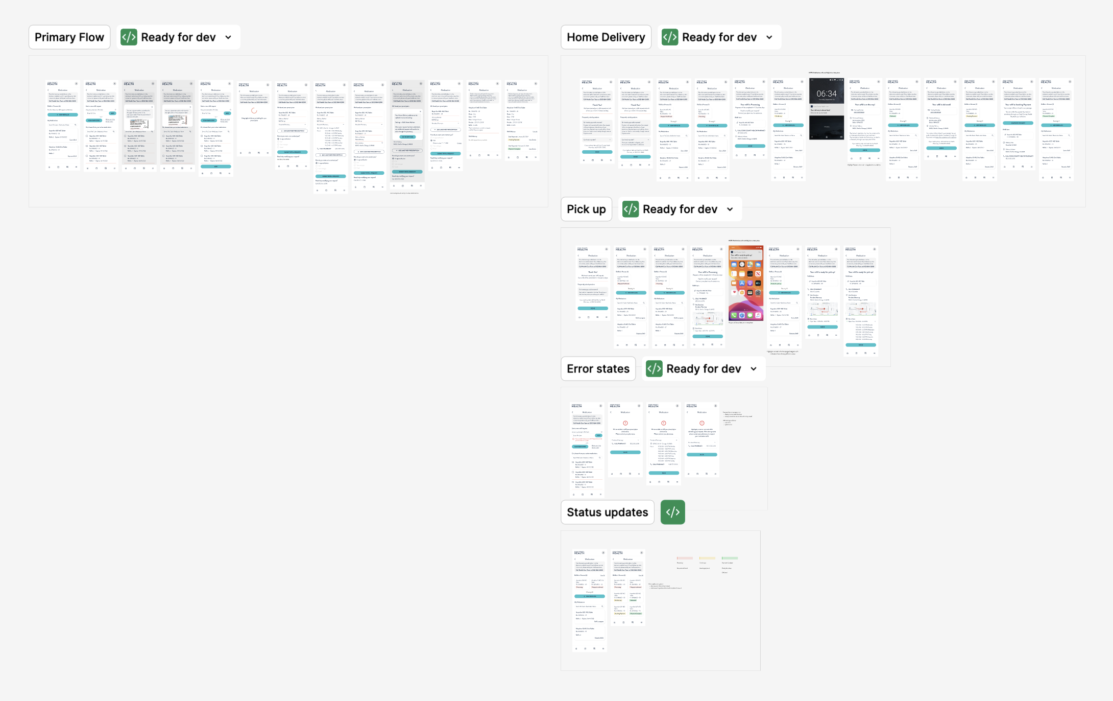 When delivering design comps to development, I ensure all potential interactions are accounted for. Screens are grouped, labeled, and annotated for clarity, alongside a clean component library and style guide. This system equips the development team with the information they need to minimize assumptions and maintain design integrity.