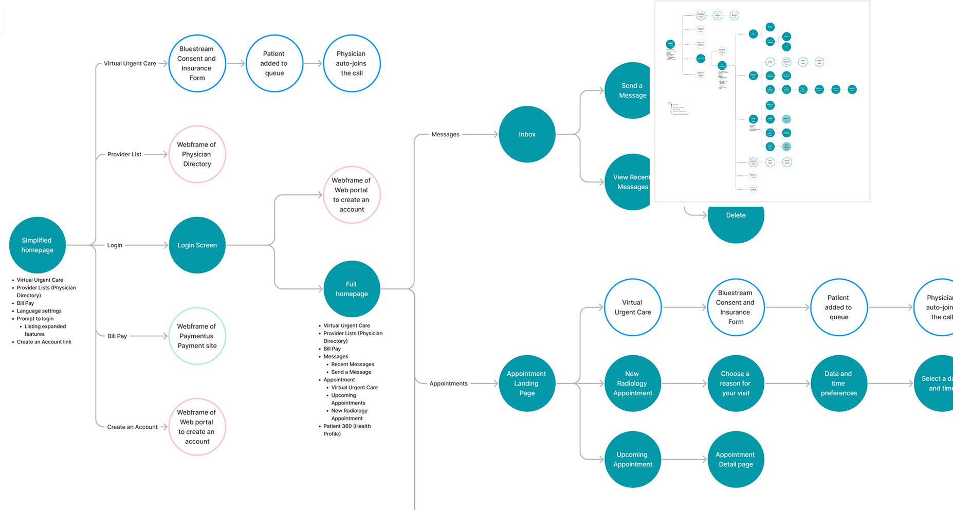 With a phased rollout approach, I had to design for the present while setting a strong foundation for future expansions. The user journey mapping for the MVP phase focused on bringing the app to market with quick-win features and introducing virtual care through a third-party vendor.